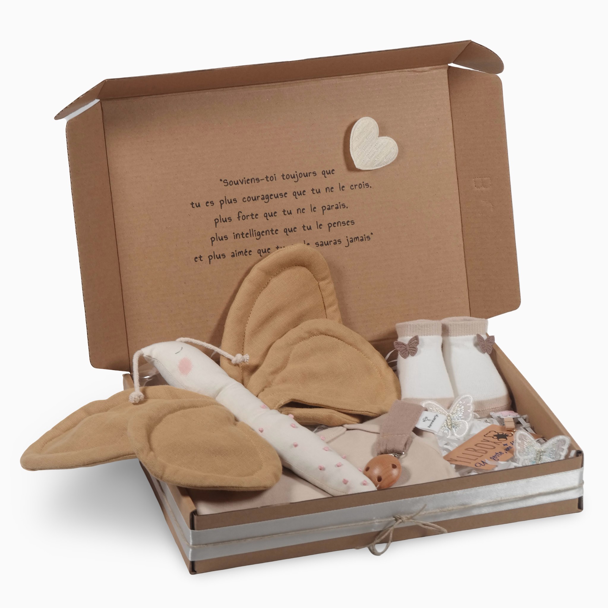 Dieses 6-teilige Geburtsset wurde entworfen, um Neugeborenen von 0 bis 3 Monaten einen Moment der absoluten Zärtlichkeit zu schenken. Es enthält eine Auswahl an Artikeln aus 100% natürlichen Materialien, die sorgfältig nach Qualität und Design ausgewählt und von Hand in einer wunderschönen Geschenkbox verpackt wurden, um dieses Geschenk zu einer unvergesslichen Erinnerung zu machen.