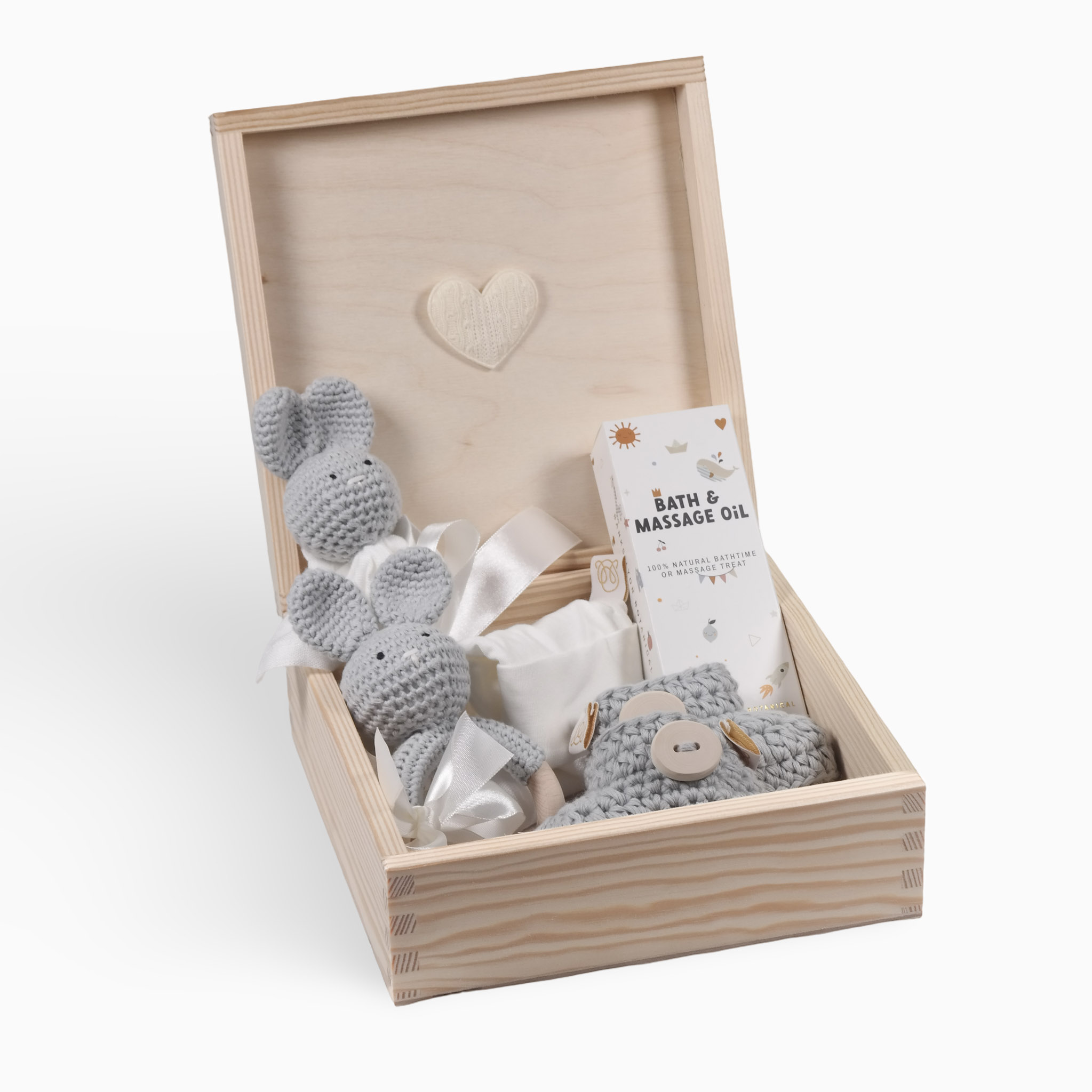 Dieses Geburtsset wurde entworfen, um Neugeborenen von 0 bis 3 Monaten einen Moment der absoluten Zärtlichkeit zu schenken. Jedes Element wurde sorgfältig nach seiner Qualität, seinen natürlichen Materialien und seinem zarten Design ausgewählt und von Hand in einer wunderschönen Geschenkbox verpackt, ideal für ein unvergessliches Geschenk.