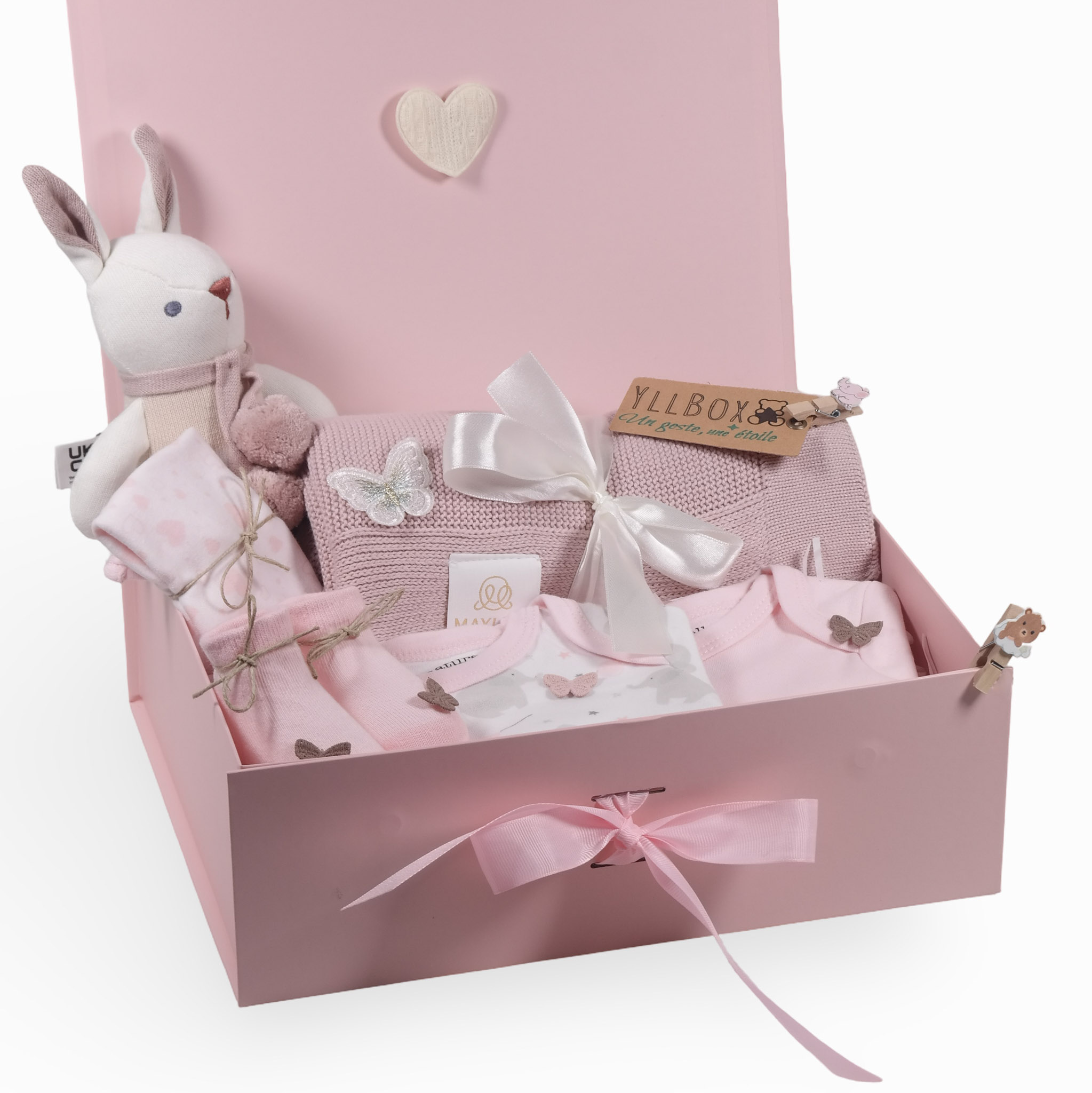 Ce coffret bébé composé de 8 pièces a été imaginé pour envelopper bébé de douceur et de confort dès ses premiers mois. Il réunit des vêtements en coton biologique, une couverture délicatement tricotée et une peluche réconfortante, soigneusement sélectionnés pour allier bien-être, qualité et tendresse au quotidien. Présenté dans une boîte cadeau haut de gamme, il incarne un présent raffiné et plein d’émotion.