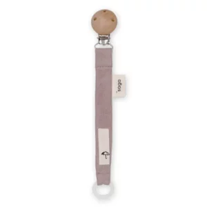 - Une attache-sucette en mousseline avec clip en bois, douce, respirante et sûre pour la peau sensible de bébé. Pratique et raffinée, elle maintient la sucette ou l’anneau de dentition à portée de main tout au long de la journée